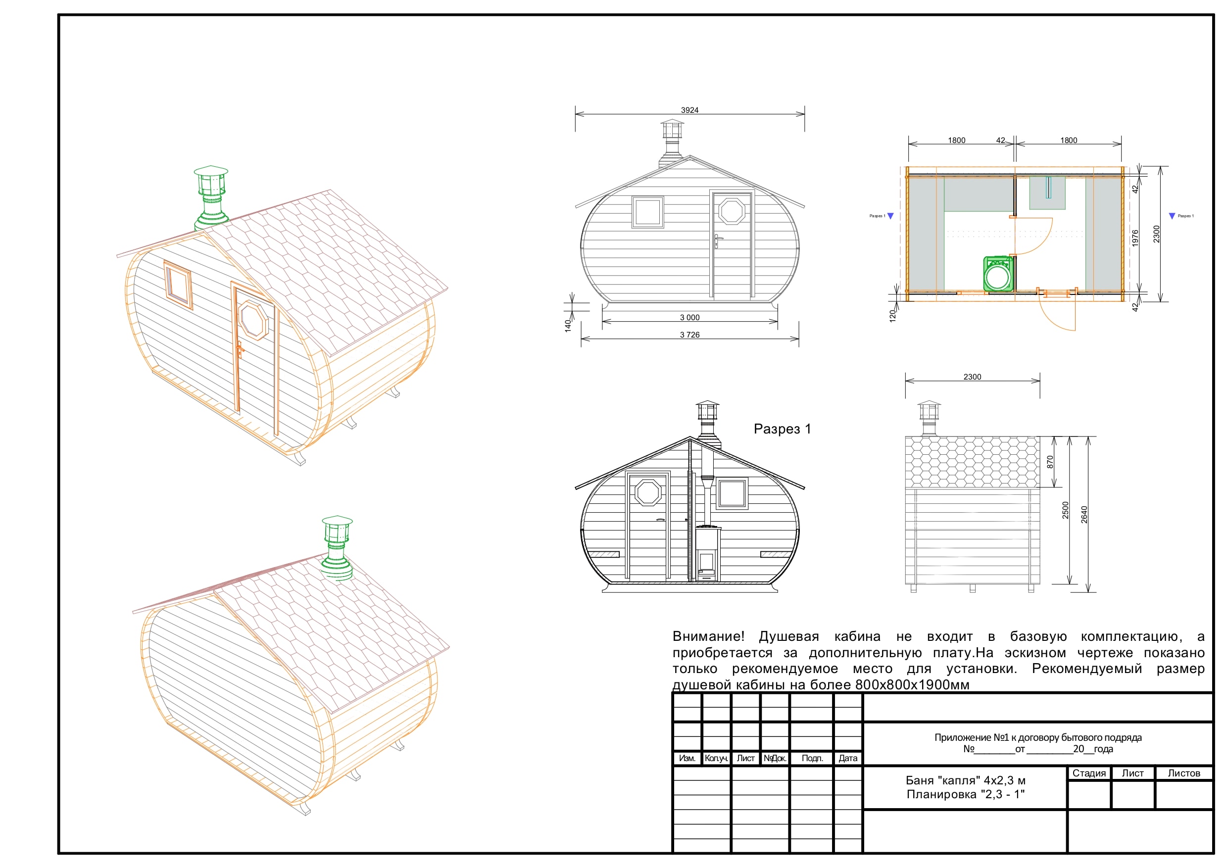 | Прочее | Вентиляционный клапан, слив в полу в каждом помещении, окошко в парилке 50х50см |