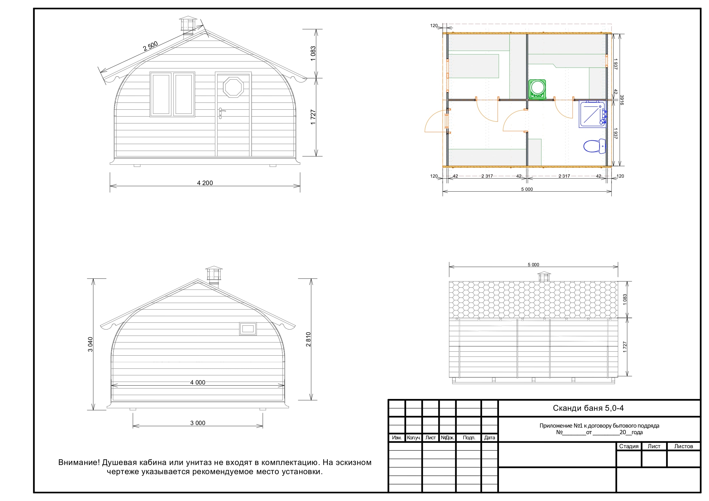 Вентиляционный клапан, слив в полу в каждом помещении, окошко в парилке 30х40см, Форточка в комнате отдыха 90х90см |